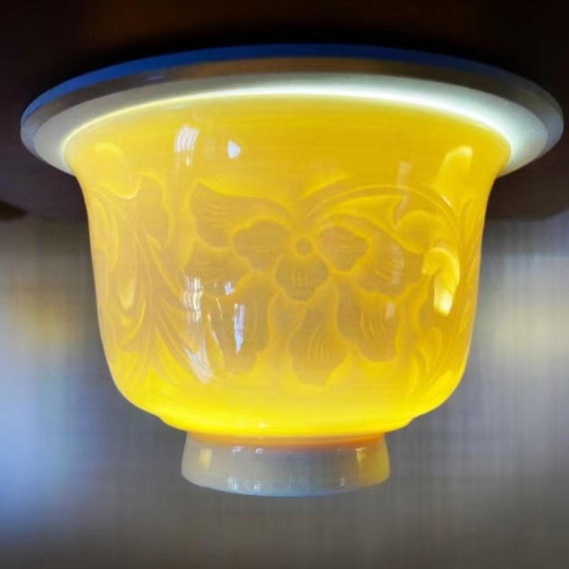 工藝:純手工拉坯、剔花,高溫?zé)疲?4K純金鑲嵌